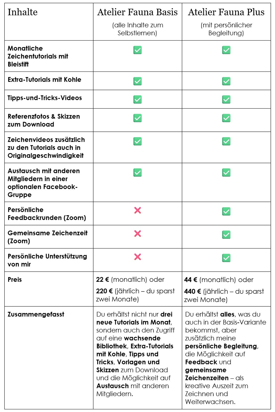 Entscheide dich für deine Lieblings-Variante von Atelier Fauna und für die monatliche oder jährliche Zahlung – und starte ganz in deinem Tempo.