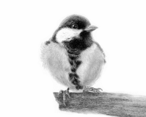 Diese kleine Kohlmeise werden wir zusammen zeichnen.