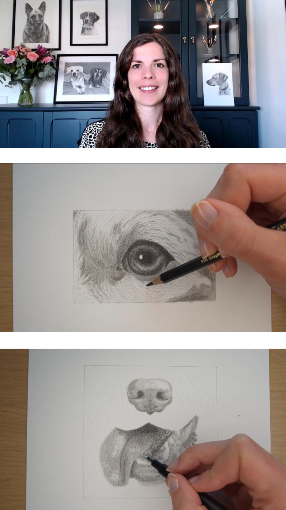 „Hundeportraits lebendig machen: Augen, Fell und Schnauze im Detail“ ist ein Online-Selbstlernkurs. Das bedeutet, du bekommst direkt nach dem Kauf Zugriff auf alle Kursinhalte und kannst sie in deinem Tempo und angepasst an deinen Terminplan bearbeiten. Inhaltlich habe ich alles so aufbereitet, dass du gut alleine zurechtkommst und keine Fragen offen bleiben sollten.